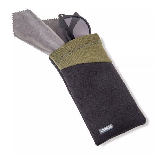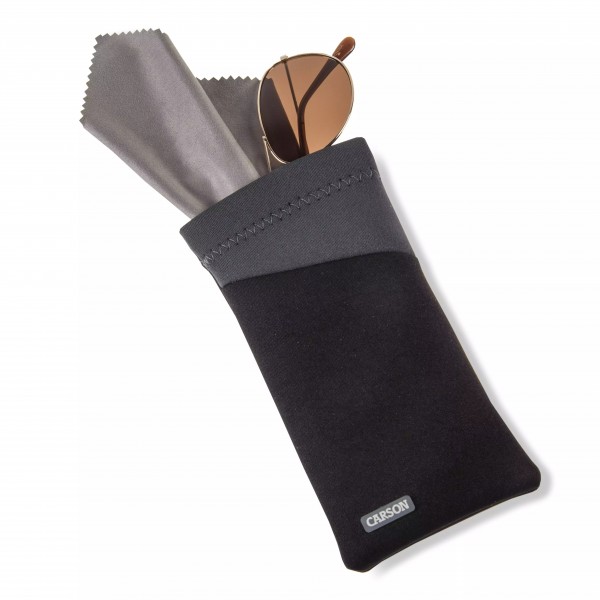 La pochette à lunettes Carson avec chiffon en microfibre intégré est l’étui à lunettes le plus pratique du marché. Vous ne chercherez plus jamais votre chiffon en microfibre. La pochette à lunettes est dotée d’un chiffon pour lentilles en microfibre super doux fixé à l’intérieur de l’étui, pour le garder propre et en sécurité. L’étui est fait de néoprène flexible et s’adapte à la plupart des lunettes et lunettes de soleil. Protégez et nettoyez vos lunettes de vue et vos lunettes de soleil chères avec la pochette à lunettes avec chiffon en microfibre intégré. Dimensions du chiffon en microfibre : 6,7″ x 7,6″