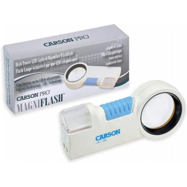 Il s'agit d'une loupe asphérique 11x, d'une loupe éclairée par LED et d'une lampe de poche.