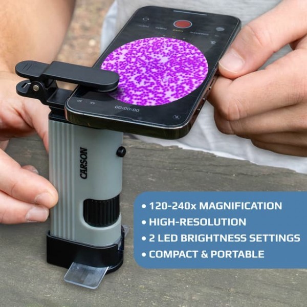 Le microscope de poche MicroPic™ est un microscope compact à haute résolution conçu pour offrir une expérience d'apprentissage pratique et captivante. Grâce à son grossissement de 120x à 240x, il permet de visualiser clairement le monde microscopique, faisant de lui un outil pédagogique exceptionnel pour l’enseignement des STEM.
